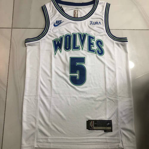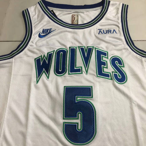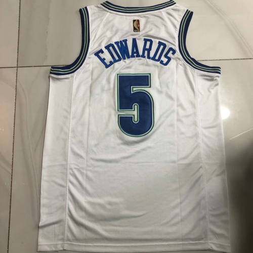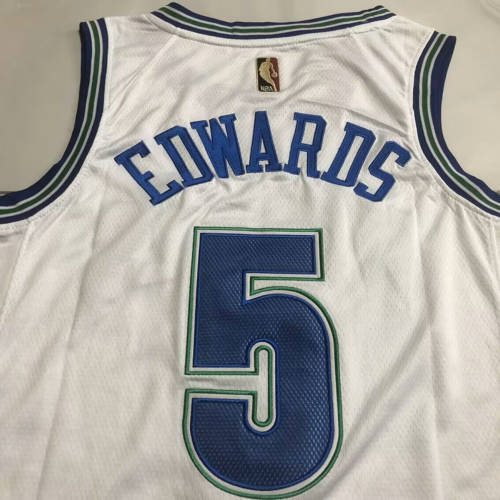 森林狼5号爱德华兹复古白色XS-XXL