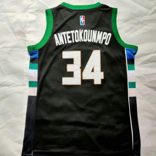 雄鹿队34号黑色童装耐克球衣