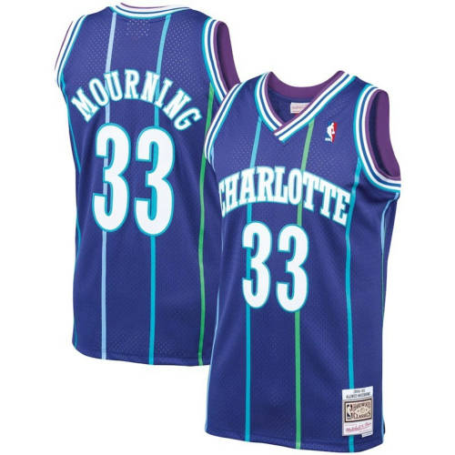 黄蜂33号紫色条纹94-95赛季米切尔复古球衣--阿朗佐.莫宁