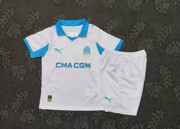 25-26 Marseille Home Kids Cheap Soccer Jerseys
