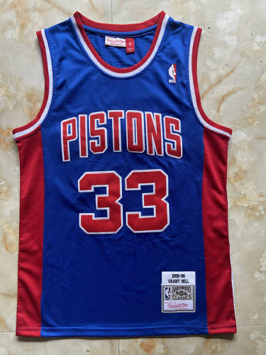 活塞队33号希尔蓝色网眼复古球衣