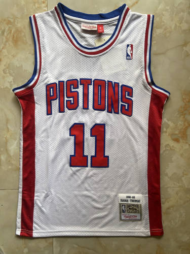 活塞队11号托马斯蓝色网眼复古球衣